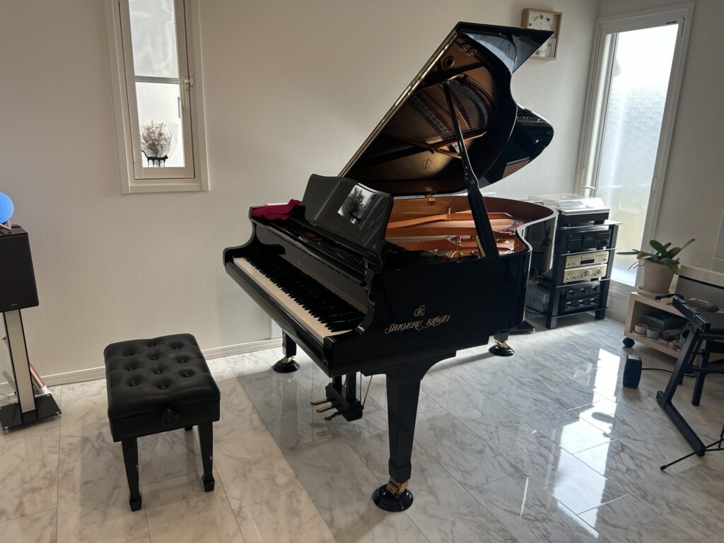 こちらではショパン国際コンクールでも使用されている世界的に高い評価を受けている、KAWAI社の『Shigeru Kawai』 のSK-3シリーズ のグランドピアノが置かれております。