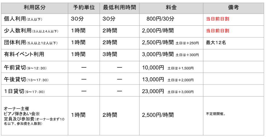 また、オーナー様のご厚意により、高級なピアノを安価な価格で利用することができます。